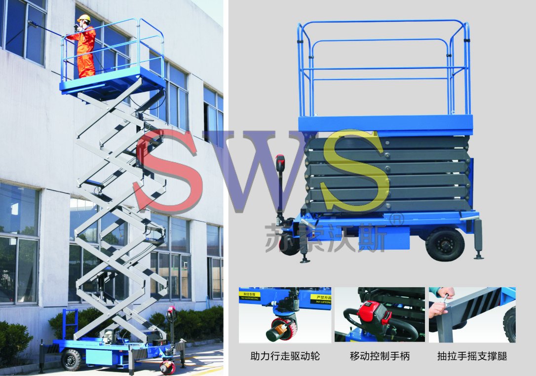 設(shè)備自身具有行走及轉(zhuǎn)向驅(qū)動(dòng)功能,不需人工牽引,不需外接電源。移動(dòng)靈活方便,直流電動(dòng)驅(qū)動(dòng)輪具有自鎖功能,驅(qū)動(dòng)輪工作時(shí)剎車分離,不工作時(shí)自動(dòng)鎖定。令高空作業(yè)更方便快捷