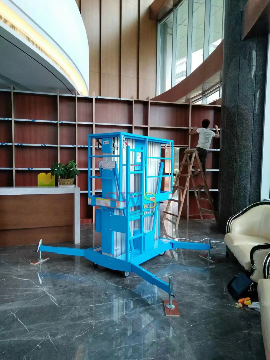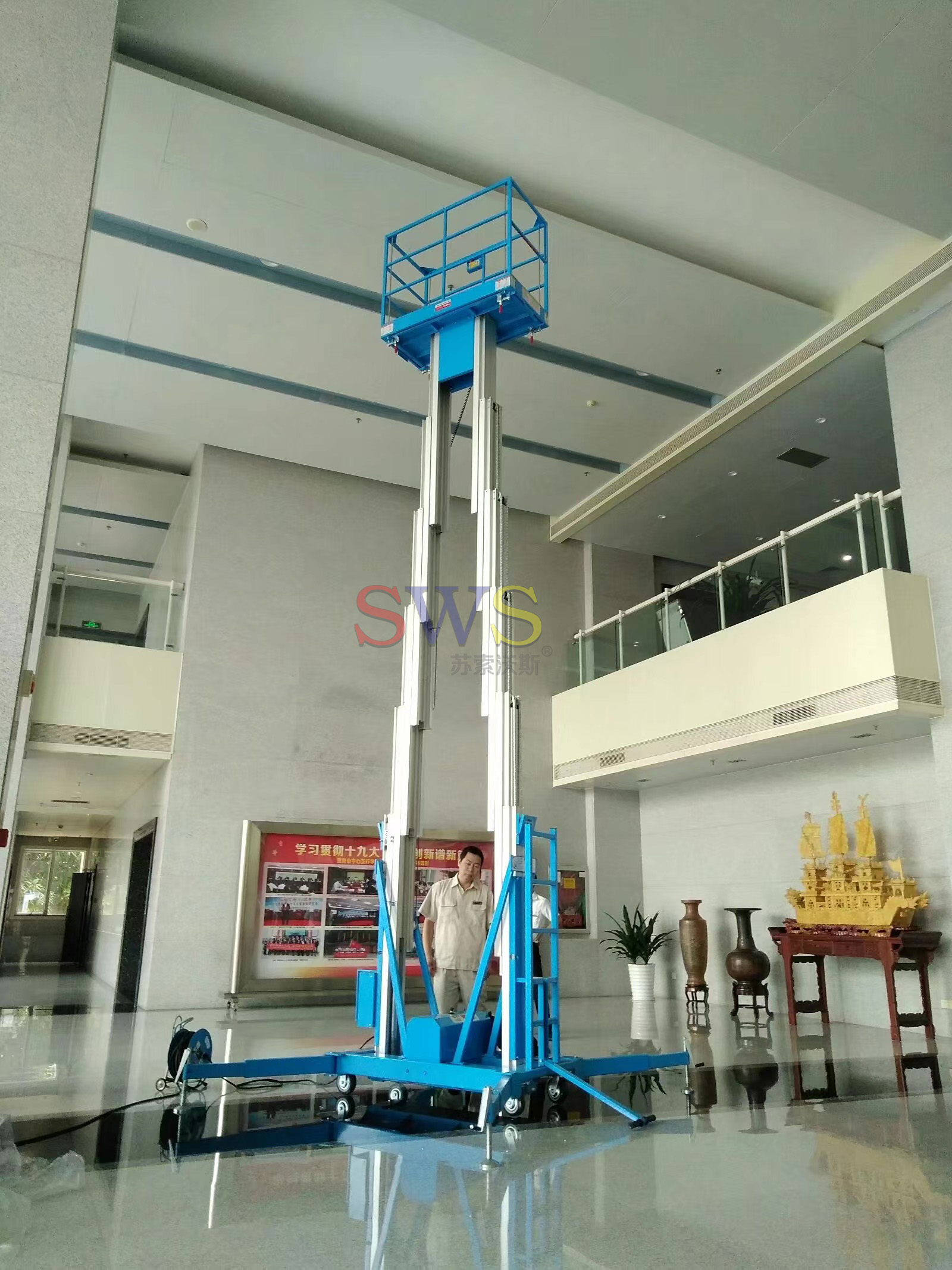 主要用途:賓館、酒店、銀行、大廳、禮堂、商場、超市、體育館等,適合狹窄小場地的高空作業(yè)維修。