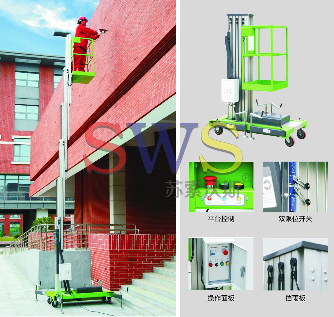 • 單桅式鋁合金高空作業(yè)平臺(tái),體積小、自重輕、移動(dòng)靈活,可通過狹小門洞或電梯,能在極小空間發(fā)揮一定作用??纱?zhèn)鹘y(tǒng)梯子或腳手架,提高工作效率,保障操作人員安全,是高空作業(yè)的必備工具。