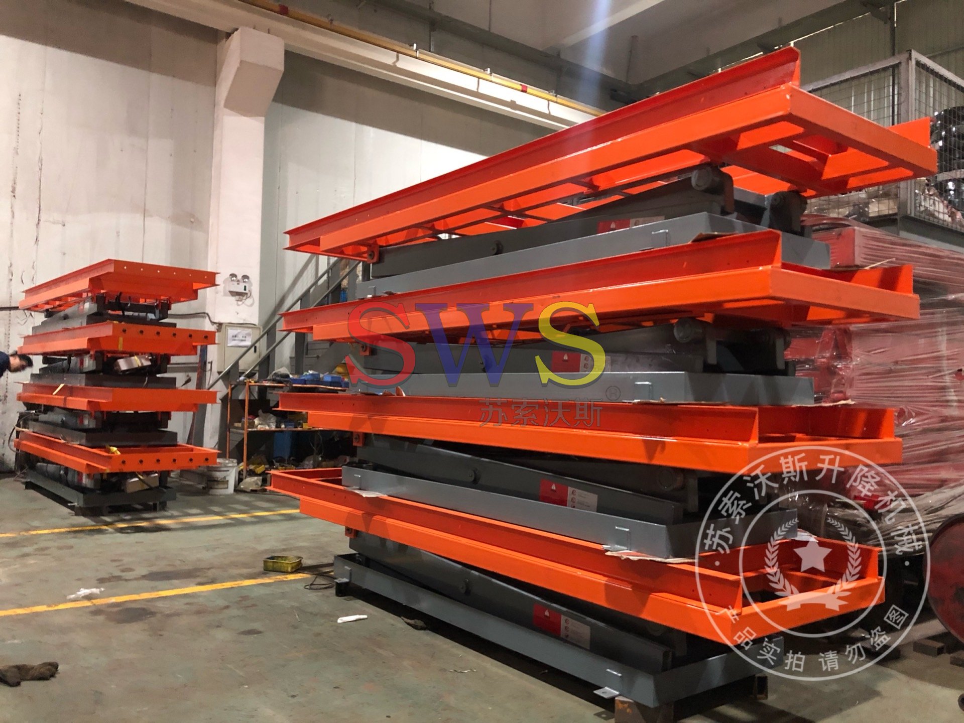 平臺車應配有兩套升降機構,可同時操作升降。升降機構應平穩(wěn)、安全可靠,沒有明顯搖晃、震蕩等現(xiàn)象,速度過快有緩沖力,。